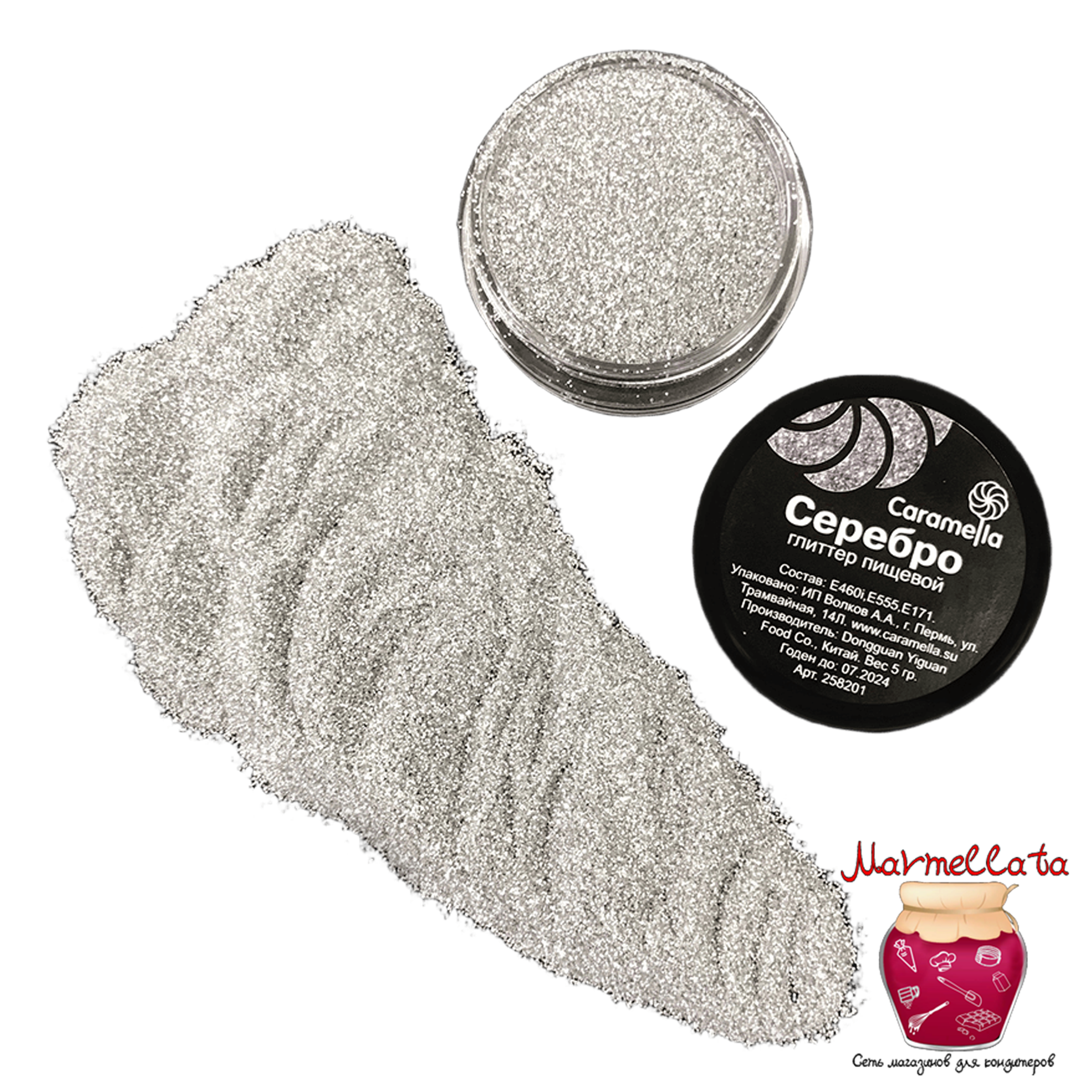 Глиттер пищевой Caramella СЕРЕБРО, 5 гр.