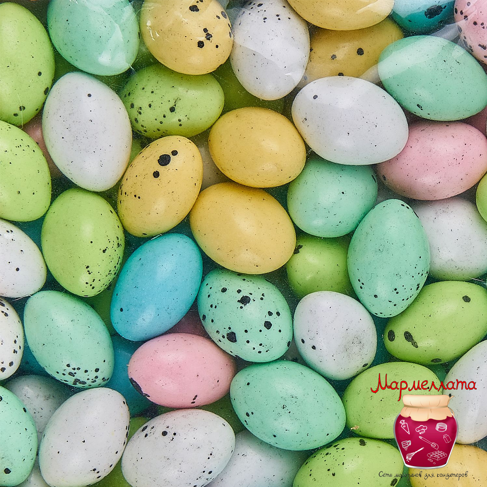 Состав: глазурь( сахар, вода, разрешенные пищевые красители, желатин, гуммиарабик, диоксид титана, карнаубский воск), сахар, заменитель какао-масла, какао порошок, обезжиренное сухое молоко, лецитин(Е322),ванилин.
