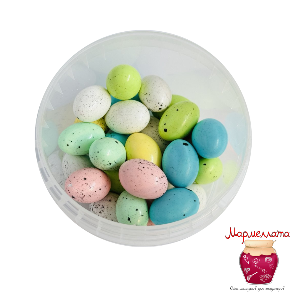 Состав: глазурь( сахар, вода, разрешенные пищевые красители, желатин, гуммиарабик, диоксид титана, карнаубский воск), сахар, заменитель какао-масла, какао порошок, обезжиренное сухое молоко, лецитин(Е322),ванилин.